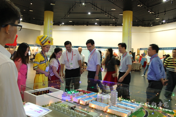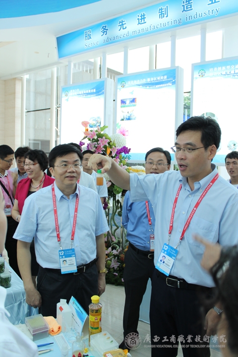 2015年9月19日,自治區高校工委書記、教育廳廳長秦斌、副廳長黃雄彪、職成處萬鋒鋒副處長等一行觀看東盟職教聯展。