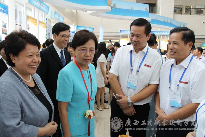 9月18-19日正式展演,我院展位上獨特的展品吸引了教育部副部長魯昕、廣西壯族自治區副主席李康、自治區高校工委書記、教育廳廳長秦斌、主管部門廣西區糧食局領導以及緬甸、馬尼拉和老撾國家教育部長等中外賓客駐足觀看。李維副院長、韋處長以及各代表隊指導老師熱情迎接了前來觀看的賓客,我院展示作品得到外界人士一致肯定和好評,讓外校人士更進一步了解到我院的辦學成果,提高了我院的知名度。