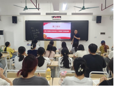 課堂上,闕勇平副校長從中國-東盟建立對話關(guān)系的歷史背景和歷程、中國-東盟建立對話關(guān)系三十年取得的成就和經(jīng)驗方面進行授課。并從設(shè)施聯(lián)通、經(jīng)貿(mào)合作、新興領(lǐng)域、人文交流、民生福祉等方面闡釋中國-東盟博覽會為何成為亞太區(qū)域合作中最為成功和最具活力的典范,成為推動構(gòu)建人類命運共同體的生動例證。