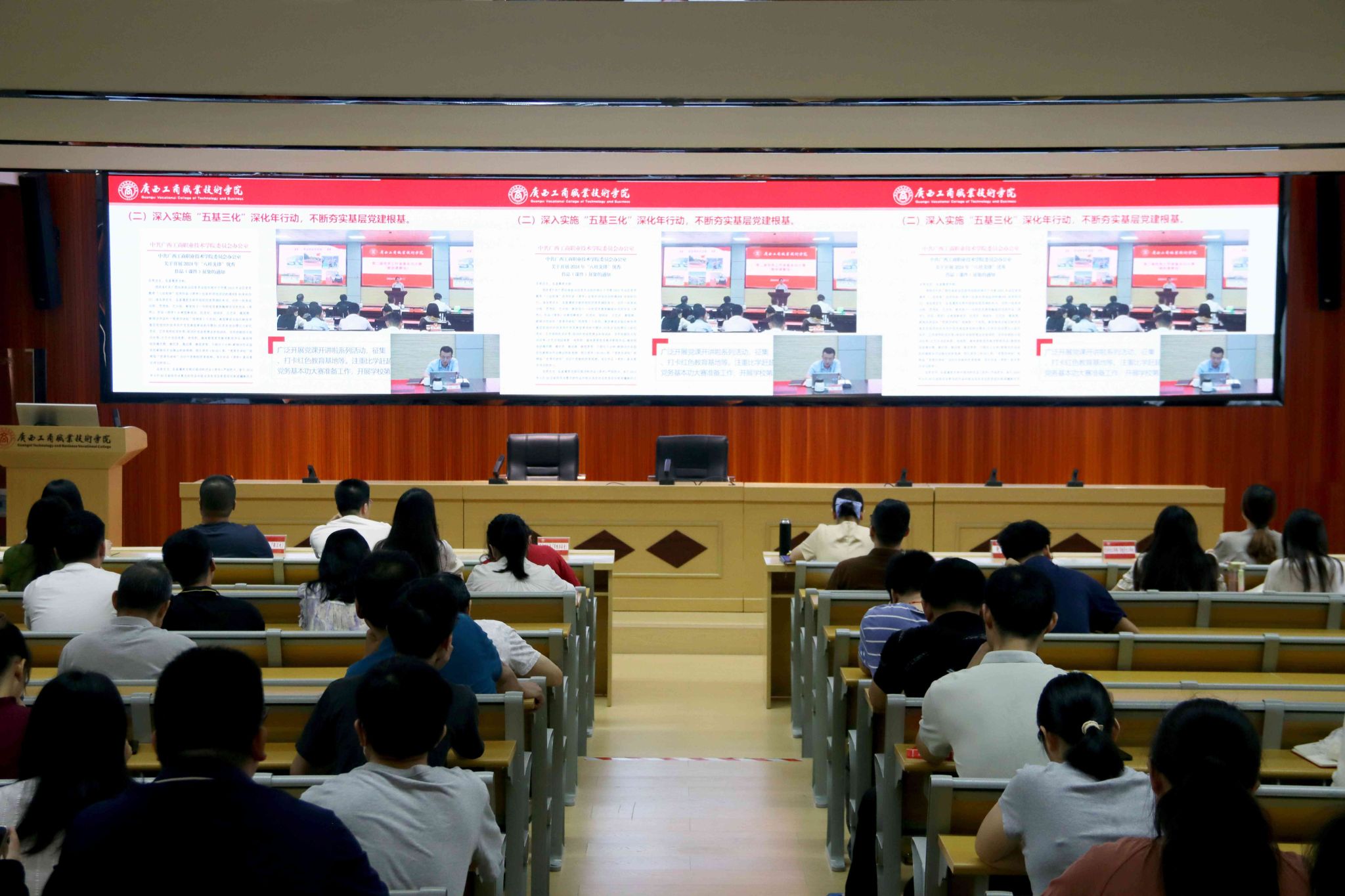7月12日,學(xué)校在鵬飛校區(qū)召開2023—2024學(xué)年第二學(xué)期教職工期末大會(huì),總結(jié)本學(xué)期學(xué)校工作的成效和經(jīng)驗(yàn),謀劃2024年下半年工作。學(xué)校領(lǐng)導(dǎo)李維、劉進(jìn)、安仲文、韋云鳳、闕勇平,全體中層領(lǐng)導(dǎo)干部,部分教代會(huì)代表在主會(huì)場(chǎng)參會(huì),其余教職工在分會(huì)場(chǎng)參會(huì)。學(xué)校黨委書記李維主持大會(huì),學(xué)校校長(zhǎng)劉進(jìn)作學(xué)期工作總結(jié)報(bào)告。