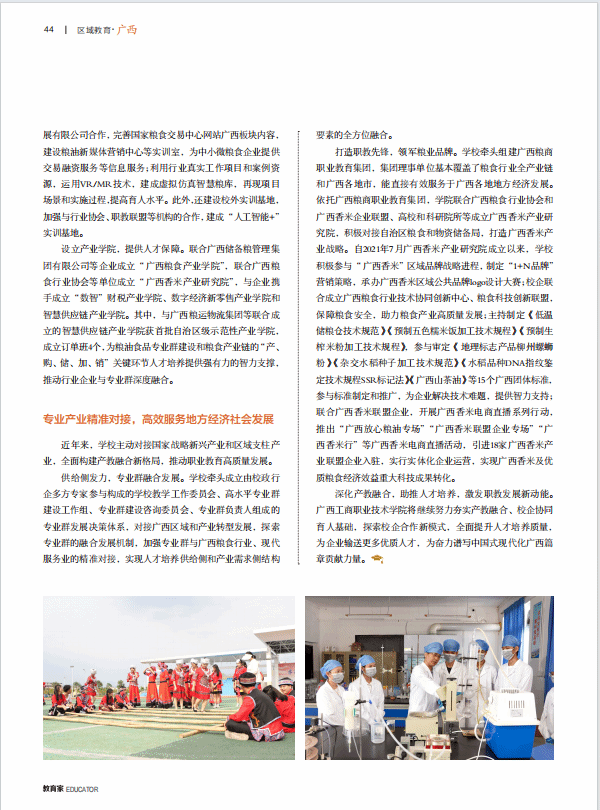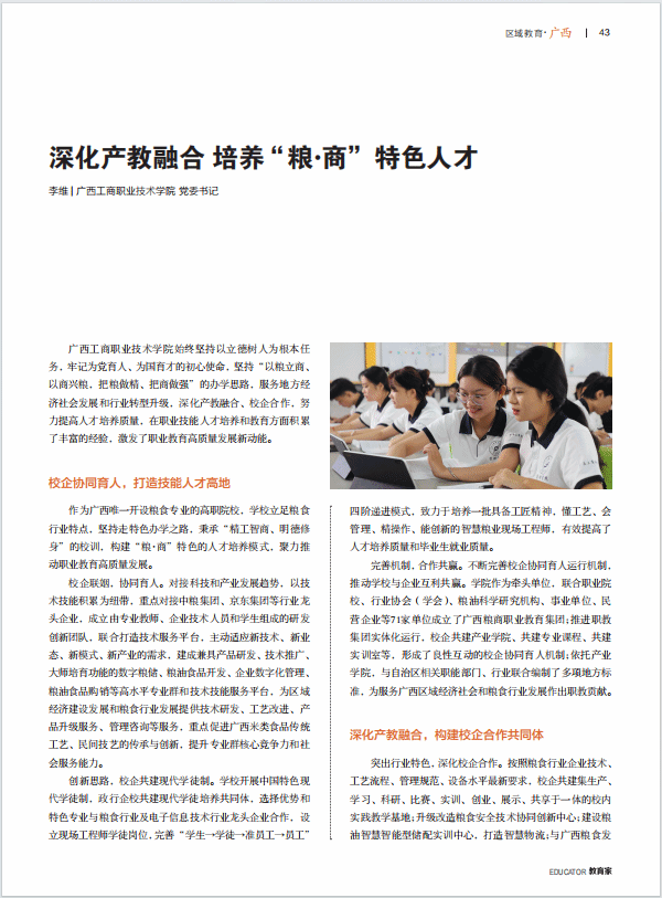 2024年3月出版的《教育家》雜志刊發(fā)學(xué)校黨委書(shū)記李維署名文章《夯實(shí)職業(yè)技能,育“糧·商”人才》,全文如下。