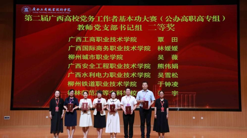 9月19日至20日,第二屆廣西高校黨務工作者基本功大賽(公辦高職高專組)比賽在我校武鳴校區舉行。我校選派的馬克思主義學院教師覃田、經貿學院教師梁莉莉、管理學院教師楊淑英三位老師分別榮獲教師黨支部書記組、學生黨支部書記組、專職組織員組二等獎。覃田老師的微黨課《一片丹心永向黨 矢志奉獻育桃李》在閉幕式上進行了現場展示。