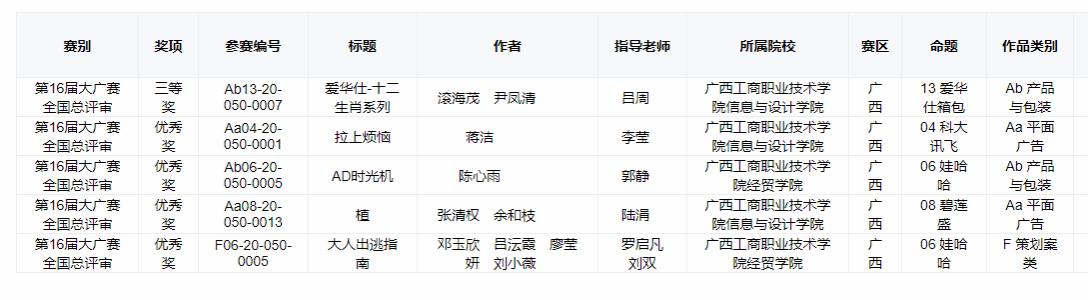 第16屆全國(guó)大學(xué)生廣告藝術(shù)大賽(廣西賽區(qū))獲獎(jiǎng)截圖