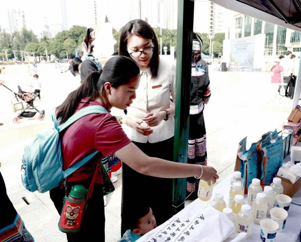 我校展位展出的五色糯米飯、五色糯米酒、生榨米粉、茉莉花茶等產品吸引了在場眾多市民嘉賓的參觀品嘗,我校師生們熱情地向現場市民和嘉賓講解,電子商務專業學生還現場通過直播方式介紹我校展出產品,充分展現了我校師生良好的精神風貌,得到了現場觀眾的一致好評。