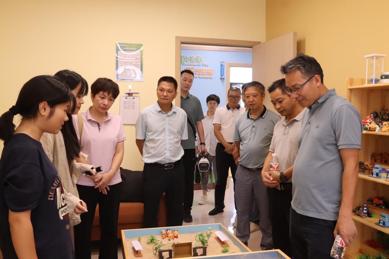 (圖二:核驗組專家參觀心理健康教育與咨詢中心沙盤室)