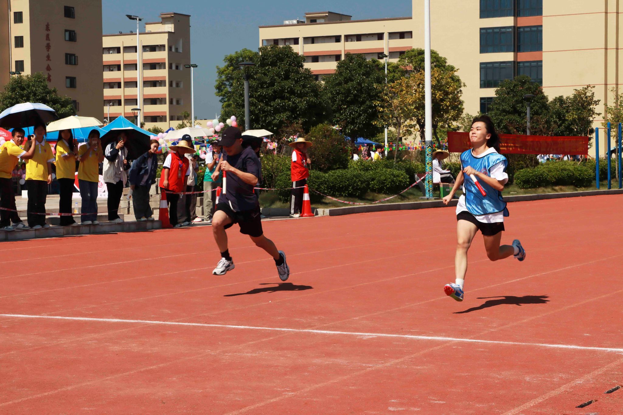 學校領導高度重視本屆運動會,在賽事開展期間,到現場檢查指導工作,保證賽事順利開展,與志愿者們親切交談并為運動健兒們加油助威。