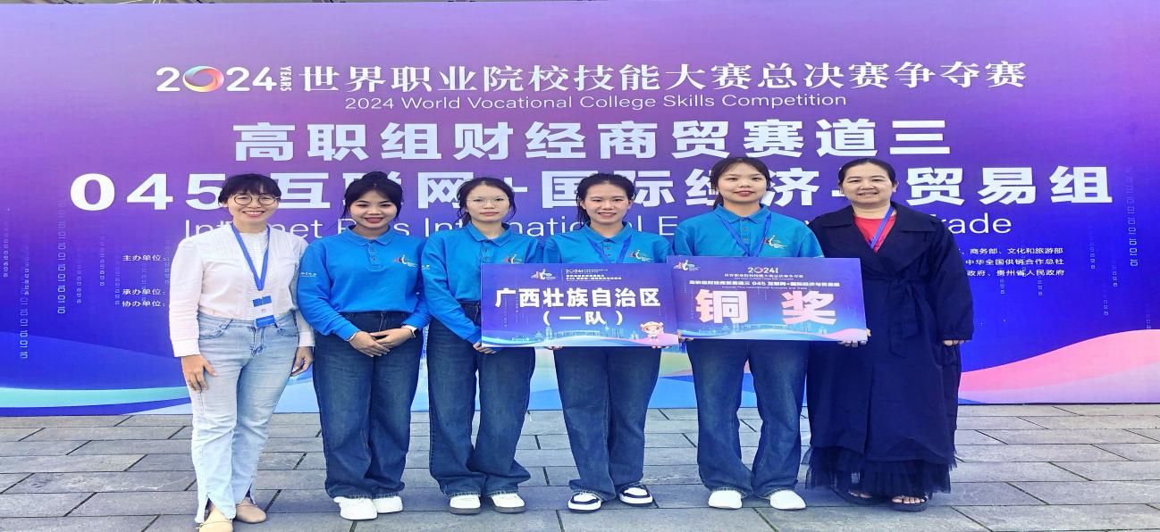 10月27日,2024年世界職業(yè)院校技能大賽總決賽爭(zhēng)奪賽(高職組)財(cái)經(jīng)商貿(mào)賽道“互聯(lián)網(wǎng)+國(guó)際經(jīng)濟(jì)與貿(mào)易”賽項(xiàng)在貴州交通職業(yè)大學(xué)開(kāi)賽,來(lái)自全國(guó)61支隊(duì)伍的237名選手展開(kāi)激烈角逐。我校參賽隊(duì)代表廣西參賽。由我校經(jīng)貿(mào)學(xué)院左瑞瑞、陳淑芬擔(dān)任指導(dǎo)教師,劉菲菲、劉雨宣、梁清睿、王潔4名同學(xué)組成的參賽團(tuán)隊(duì),在本次比賽中表現(xiàn)出色,獲得了2024年世界職業(yè)院校技能大賽總決賽爭(zhēng)奪賽銅獎(jiǎng)。這也是我校在“互聯(lián)網(wǎng)+國(guó)際經(jīng)濟(jì)與貿(mào)易”賽項(xiàng)中首次獲得世界職業(yè)院校技能大賽獎(jiǎng)項(xiàng)。