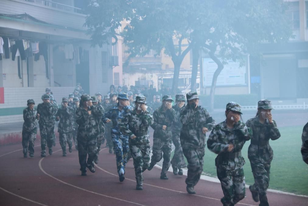 中午14:30,疏散演練開始,學(xué)生公寓模擬起火點(diǎn)開始點(diǎn)煙,火災(zāi)警報(bào)聲立即拉響。各公寓樓從高到低逐層疏散,在引導(dǎo)員的指引下,全體師生用毛巾捂住口鼻,沿著疏散通道采用彎腰低頭的姿勢,有序地疏散至安全地帶。