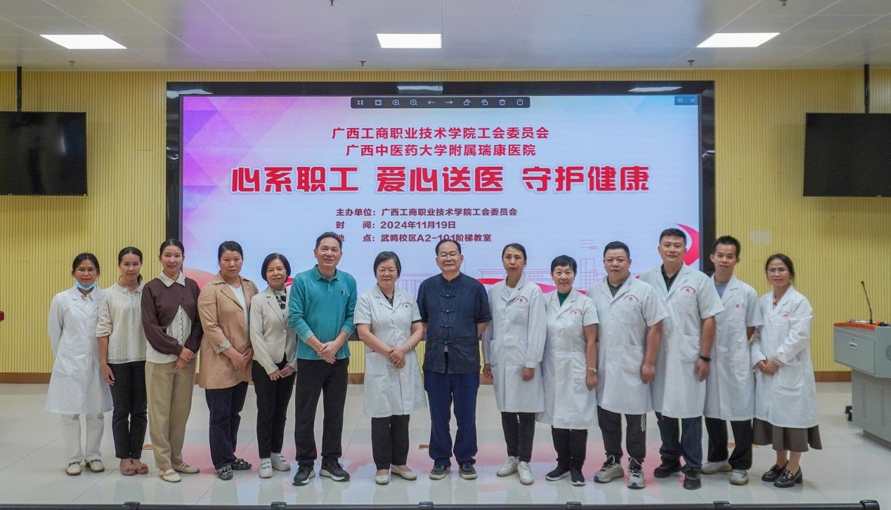 11月19日,學(xué)校在武鳴校區(qū)舉辦以“心系職工 愛心送醫(yī) 守護(hù)健康”為主題的關(guān)懷活動(dòng)。此次活動(dòng)旨在通過一系列貼心、專業(yè)的醫(yī)療服務(wù),為全校教職工送上溫暖與關(guān)懷,進(jìn)一步提升他們的健康意識和身體素質(zhì)。學(xué)校黨委副書記安仲文,學(xué)校工會(huì)負(fù)責(zé)人及工作人員,各工會(huì)分會(huì)、直屬工會(huì)小組近300多名教職工會(huì)員參與了本次活動(dòng)。活動(dòng)采取線上和線下同步進(jìn)行。