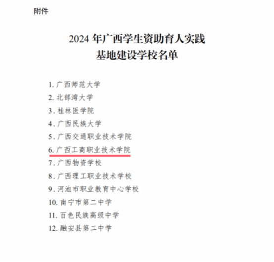 近日,自治區教育廳發布了《自治區教育廳關于公布2024廣西學生資助育人實踐基地建設學校名單的通知》,我校獲評第二批廣西高校資助育人實踐示范基地建設高校。這標志著我校在資助育人平臺建設上取得新的突破,也是學校資助育人工作質量不斷提升的重要體現。