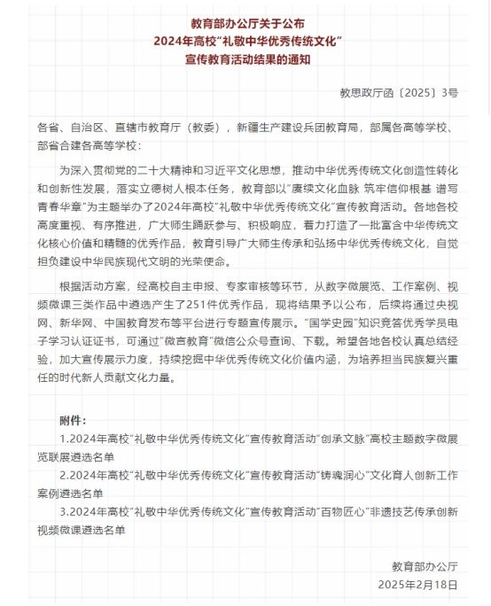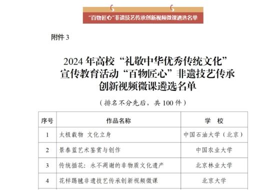 近年來,學(xué)校高度重視中華優(yōu)秀傳統(tǒng)文化教育和傳承工作,將其作為落實立德樹人根本任務(wù)、培育和踐行社會主義核心價值觀的重要抓手。學(xué)校開設(shè)中華優(yōu)秀傳統(tǒng)文化相關(guān)課程、舉辦傳統(tǒng)文化講座和活動、支持學(xué)生社團開展傳統(tǒng)文化活動等,積極營造濃厚的校園文化氛圍,引導(dǎo)廣大師生堅定文化自信,傳承和弘揚中華優(yōu)秀傳統(tǒng)文化。學(xué)校將以此次入選教育部優(yōu)秀作品為契機,持續(xù)挖掘中華優(yōu)秀傳統(tǒng)文化價值內(nèi)涵,結(jié)合時代要求繼承創(chuàng)新,為培養(yǎng)擔(dān)當(dāng)民族復(fù)興大任的時代新人貢獻文化力量。