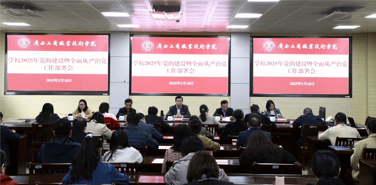 3月18日,學校在鵬飛校區(qū)召開2025年黨的建設暨全面從嚴治黨工作部署會,學習全區(qū)高校黨的建設工作會議精神,部署學校2025年黨的建設暨全面從嚴治黨工作和學校2025年紀檢監(jiān)察工作。學校黨委書記李維,學校校長劉進,學校黨委副書記安仲文,學校黨委副書記、紀委書記韋云鳳,學校副校長鄭華參加會議。