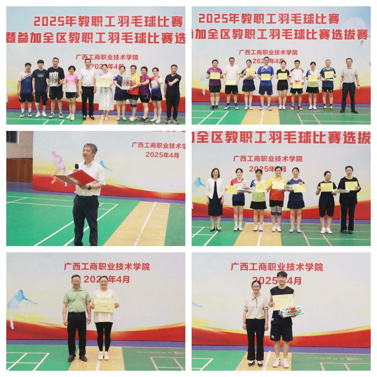 為豐富校園體育生活,促進(jìn)教職工身心健康,加強(qiáng)部門(mén)之間的交流,4月18日—22日,學(xué)校2025年教職工羽毛球比賽暨參加全區(qū)教職工羽毛球比賽選拔賽在鵬飛校區(qū)文體館成功舉辦。