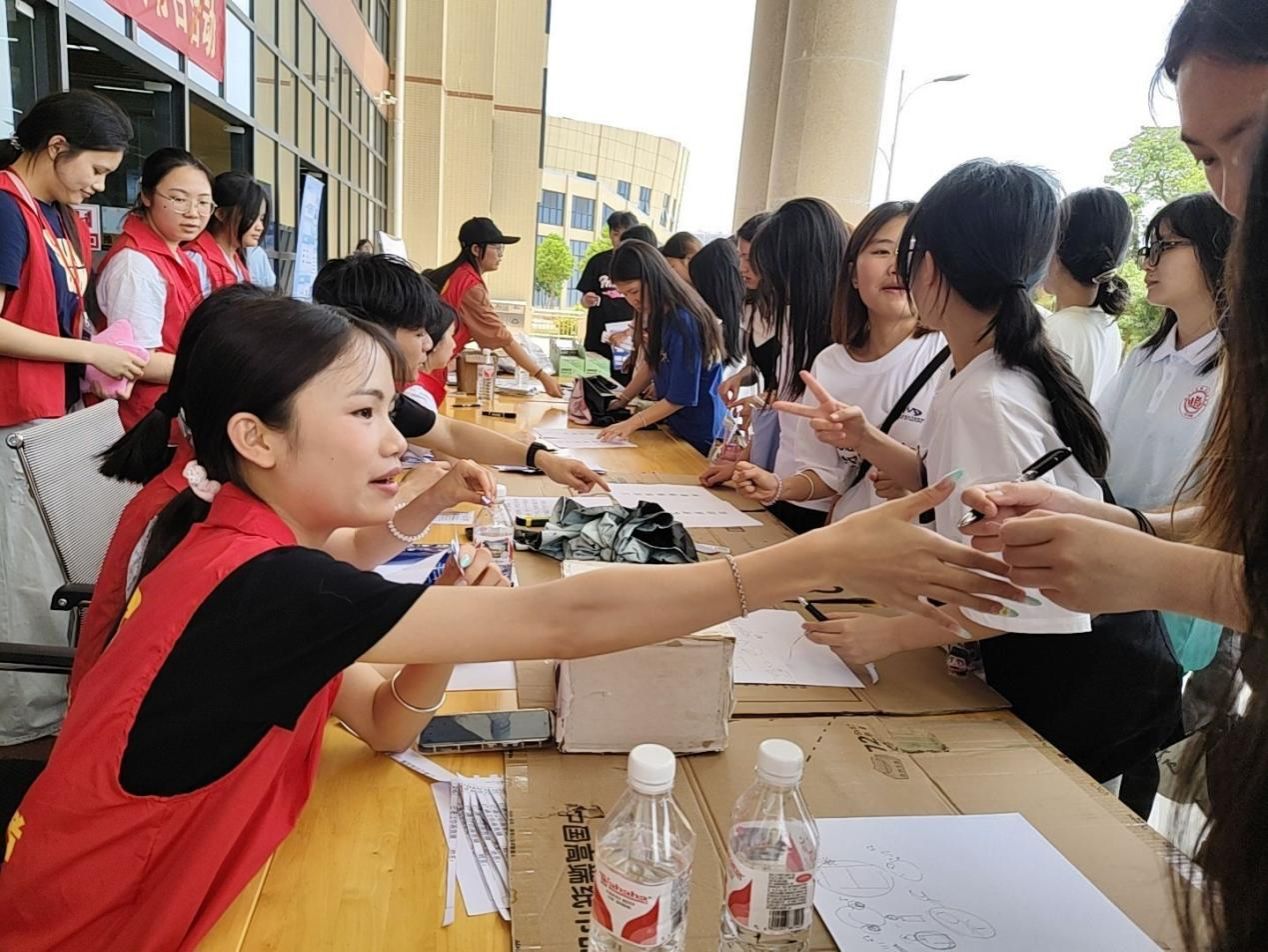 在啟動儀式后的互動環(huán)節(jié),在鵬飛校區(qū)、武鳴校區(qū)、中堯校區(qū)開展了讀書日系列活動。“詩詞大挑戰(zhàn)” 環(huán)節(jié)中,參與者需要根據(jù)提示猜出相應(yīng)的詩詞,不僅考驗了大家的詩詞儲備量,更激發(fā)了對中華經(jīng)典詩詞的熱愛;“套圈” 游戲別出心裁,獎品為多肉植物、綠植盆栽等,讓師生們在游戲的同時收獲一抹綠意;“你畫我猜”現(xiàn)場妙趣橫生,參與者手腳并用、形象比劃,搭檔絞盡腦汁猜測詞語,夸張的動作和搞笑的互動引得圍觀人群捧腹大笑;“簽名打卡拍照”區(qū),師生們在精心布置的主題背景墻前揮毫簽名,與書香留影,記錄下這充滿文化氣息的美好時刻。據(jù)統(tǒng)計,本次活動啟動儀式參與人數(shù)規(guī)模為2200多人次。