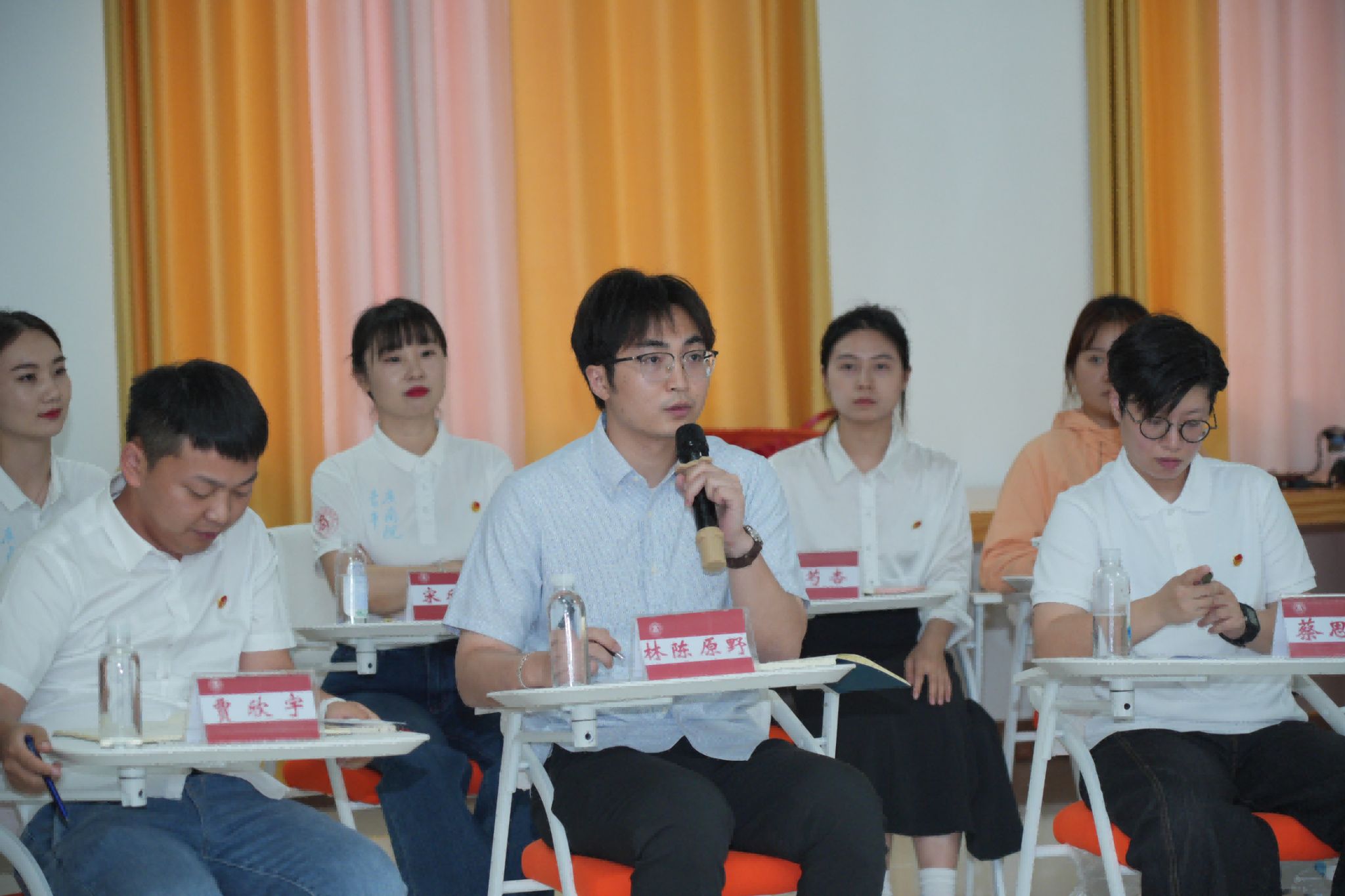 2025年5月27日,學(xué)校青年教職工團支部在武鳴校區(qū)大學(xué)生活動中心青年之家開展“青衿之志 履踐致遠(yuǎn)”系列活動之——“清廉新坐標(biāo):作風(fēng)建設(shè)青年說”主題團日活動。學(xué)校黨委書記李維、學(xué)校黨委副書記安仲文出席活動,校團委副書記朱焰、青年教職工團支部書記潘力銘及40余名青年團員教師代表參加。