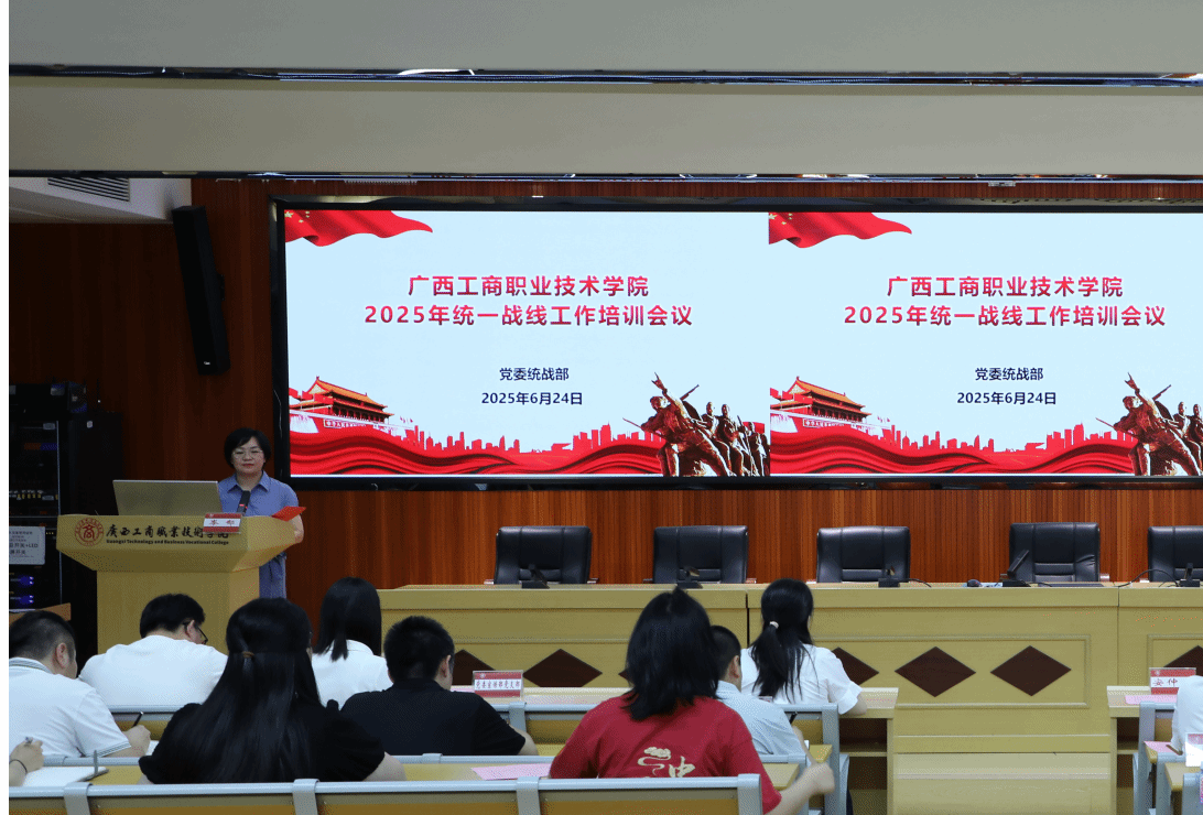 為深入學習貫徹習近平總書記關于做好新時代黨的統一戰線工作的重要思想,進一步提升學校統一戰線(下文簡稱統戰)工作隊伍的理論水平和業務能力,6月24日,學校在鵬飛校區2145會議室召開2025年統一戰線工作培訓會。黨委統戰部副部長岑郁同志主持會議并作培訓。學校各黨總支、各直屬黨支部書記以及統戰委員,團委負責人及負責統戰工作人員參加會議。