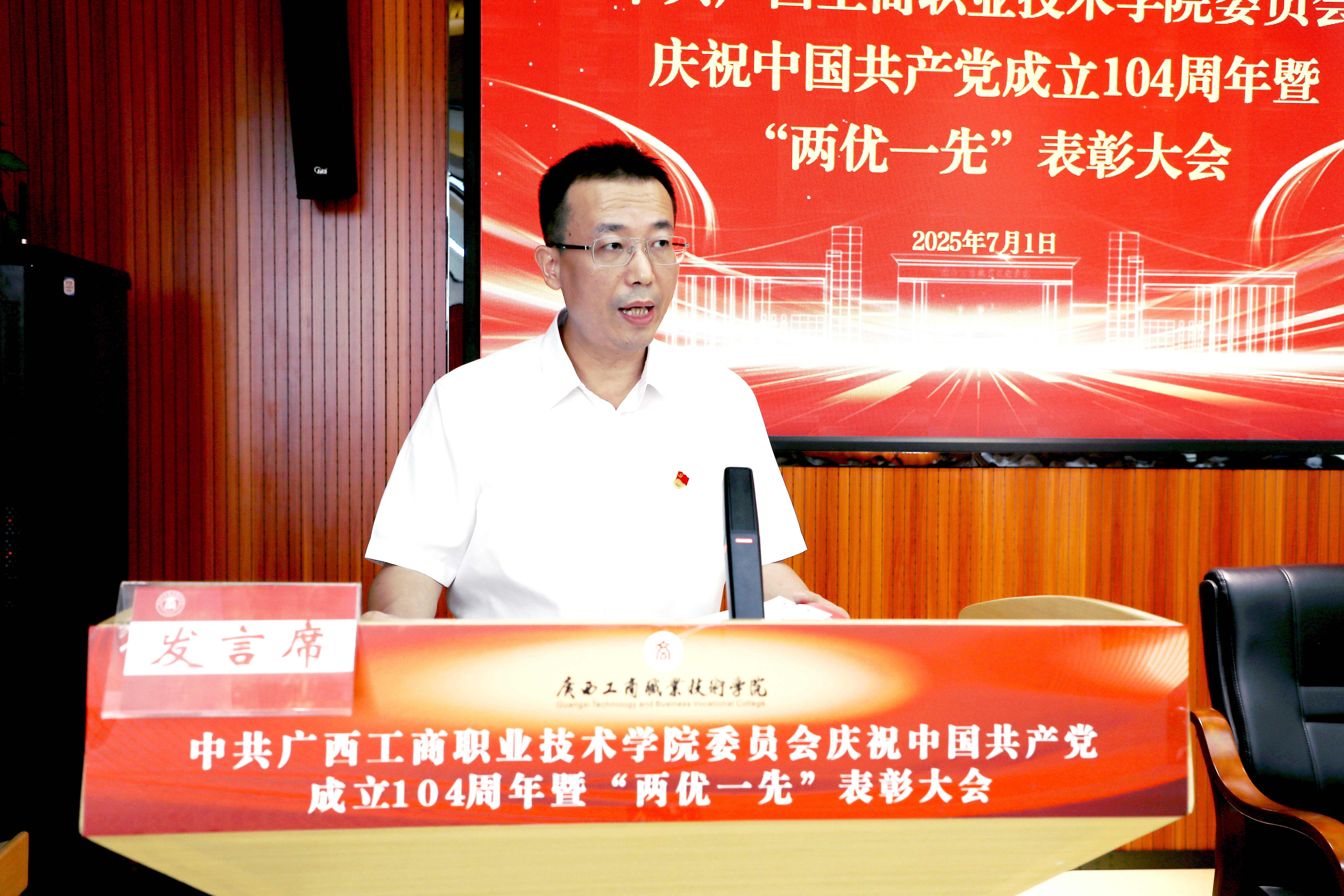 為慶祝中國共產(chǎn)黨成立104周年,回顧黨的光輝歷程,弘揚黨的優(yōu)良傳統(tǒng),表彰先進(jìn)、樹立典型,展示新時代共產(chǎn)黨人的良好形象和精神面貌,7月1日,學(xué)校召開慶祝中國共產(chǎn)黨成立104周年暨“兩優(yōu)一先”表彰大會。學(xué)校黨委書記李維,黨委副書記、校長劉進(jìn),黨委副書記安仲文,黨委副書記、紀(jì)委書記韋云鳳,副校長陳寧春、鄭華,部分教職工黨員,新發(fā)展黨員代表,離退休黨員代表在主會場參加會議,其余教職工黨員在分會場參會。大會由劉進(jìn)主持。