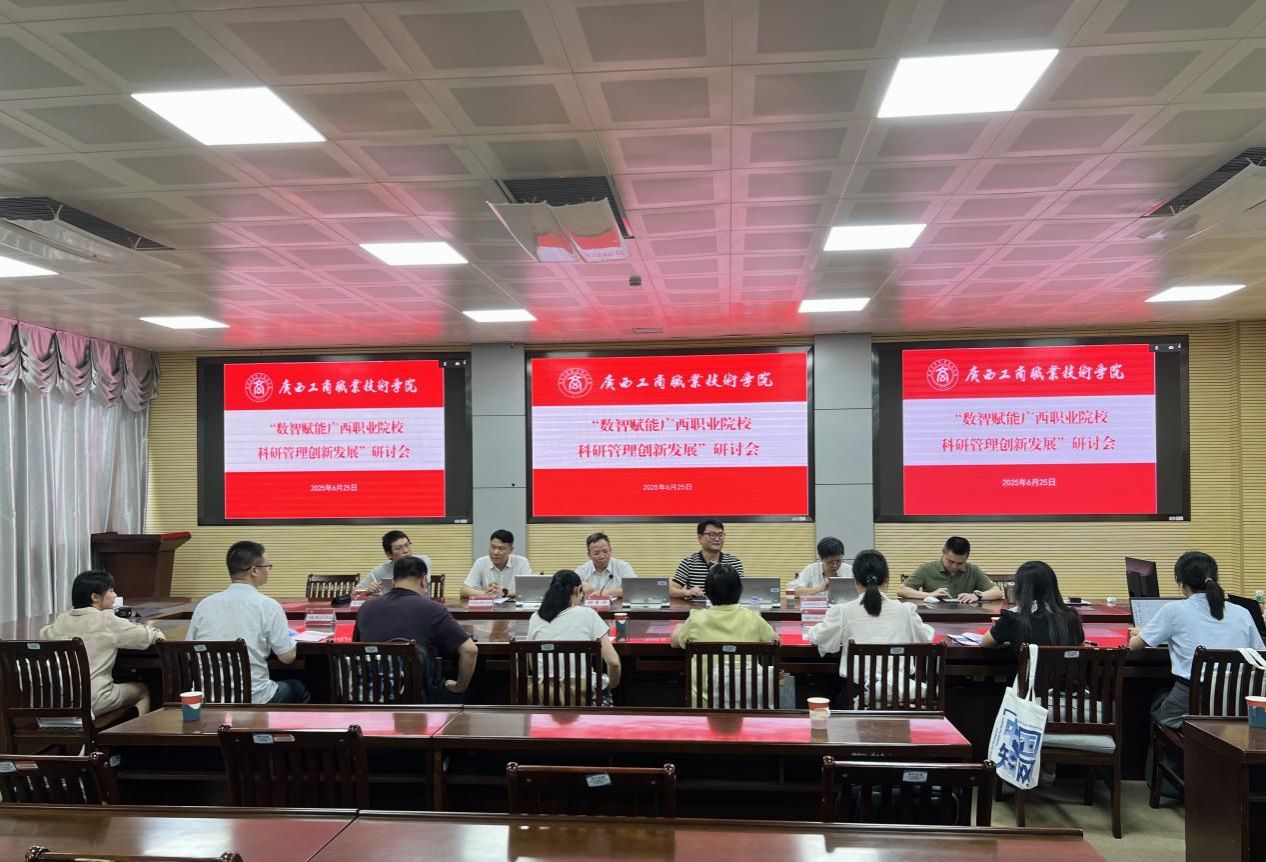 2025年6月25日,數智賦能廣西職業院??蒲泄芾韯撔掳l展研討會在學校鵬飛校區召開,此次研討會由我校與同方知網數字出版技術股份有限公司聯合舉辦。廣西工業職業技術學院,廣西幼兒師范高等??茖W校、廣西國際商務職業技術學院、廣西制造工程職業技術學院、廣西質量工程職業技術學院、廣西英華國際職業學院等來自廣西壯族自治區內的多所職業院校分管科研、信息化的負責人齊聚一堂,共同探討數智化時代職業院??蒲泄芾韯撔侣窂?。