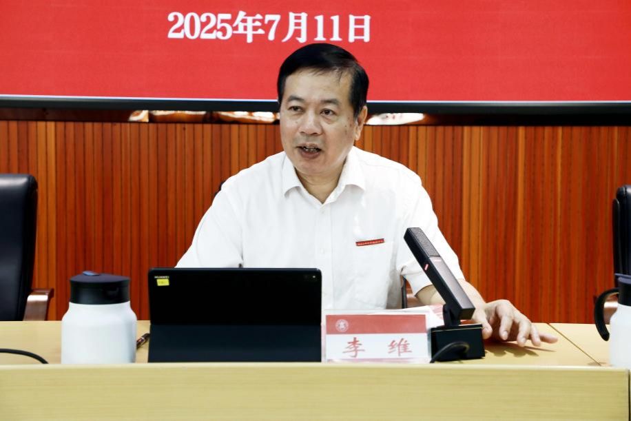 7月11日,學校在鵬飛校區召開2024—2025學年第二學期教職工期末大會,總結本學期學校工作的成效和經驗,部署推進2025年下半年工作。學校領導李維、劉進、安仲文、韋云鳳、陳寧春、闕勇平、鄭華,中層領導干部,部分教職工代表在主會場參會,其余教職工在分會場參會。學校黨委書記李維主持大會,學校校長劉進作學期工作總結報告。