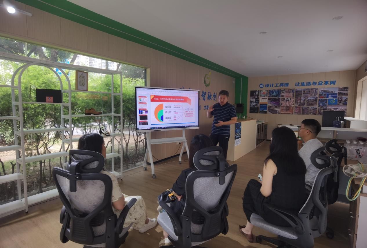 在萬安 AI 融創中心,雙方重點聚焦 AI 賦能產教融合案例及視覺藝術設計專業群升級路徑開展交流。企業方分享了四川大學數智融創應用場景、萬安社區 AI 融創中心運營模式、“云藝賦氧數創科技研究院” 孵化邏輯等典型案例,并展示了通過 AI 算法、大數據分析提升設計效率的實踐成果。雙方還結合廣西本土特色,探討了廣西IP挖掘、東盟服務及非遺文創領域的校企合作可能性,初步奠定合作基礎。