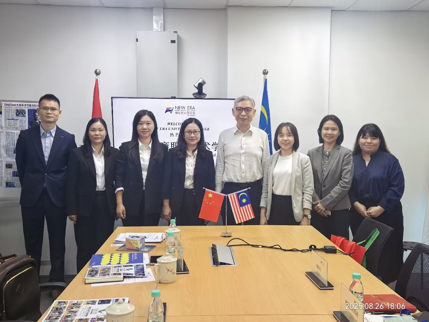 訪問新紀元大學學院時,代表團與該校校長莫順宗教授、副校長鄭詩儐副教授、國際教育學院助理院長廖筱紋副教授、國際學生招生辦公室主任彭會婷高級講師等校方代表座談交流。雙方通過視頻展示辦學特色,重點探討中國-東盟現代工匠學院共建、國際化課程開發、教育人才聯合培養、學術及師生交流、學歷提升等合作方向。兩校專業設置契合度較高,為合作奠定良好基礎,雙方達成合作意向,并計劃后續簽訂框架協議,實現資源共享與優勢互補。