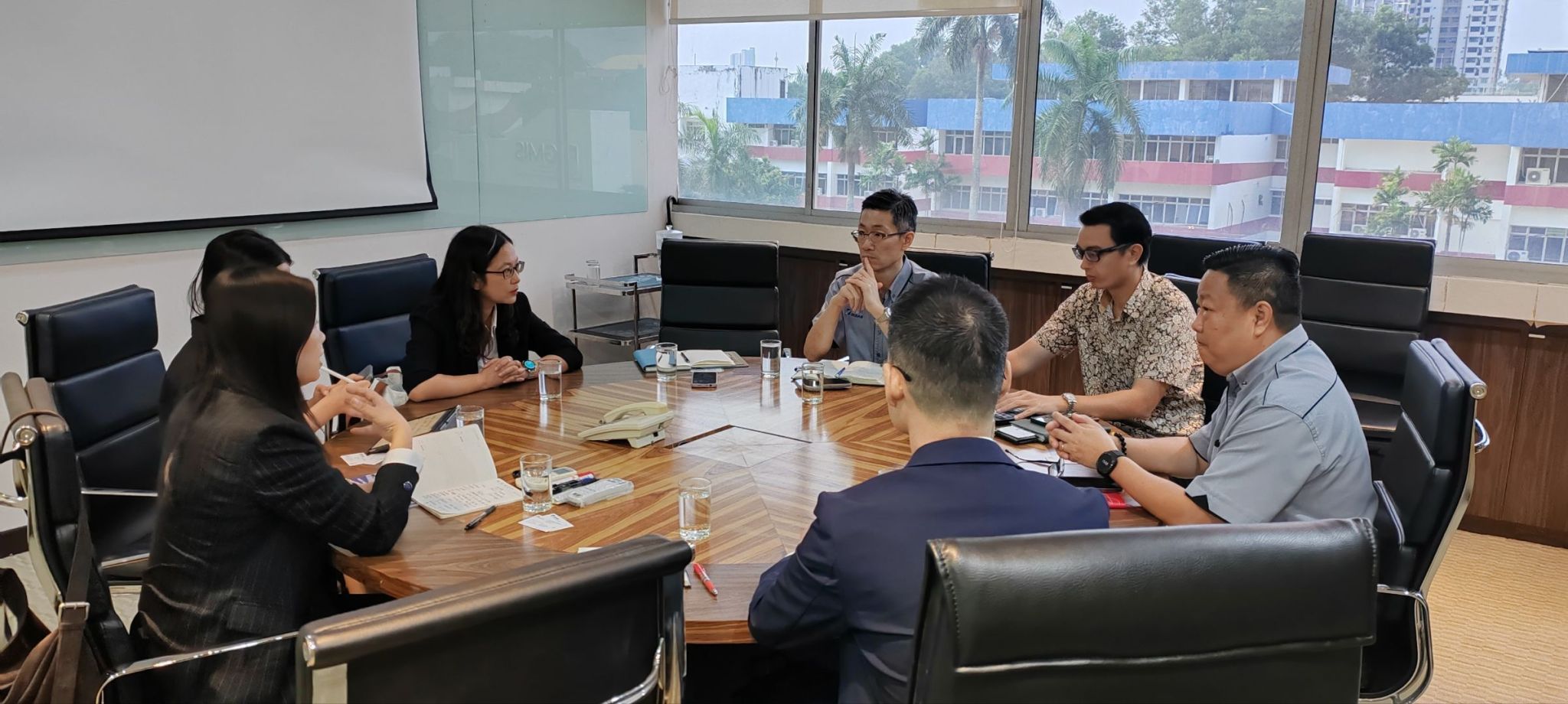 在馬來西亞富達集團,代表團與企業執行總裁Benny先生、工程部門的總經理文森特先生及財務部負責人等展開座談交流,聚焦農業領域,探討人工智能賦能生產、采摘,以及電商運營、市場營銷等環節的合作,交流校企協同發展的潛在方向。