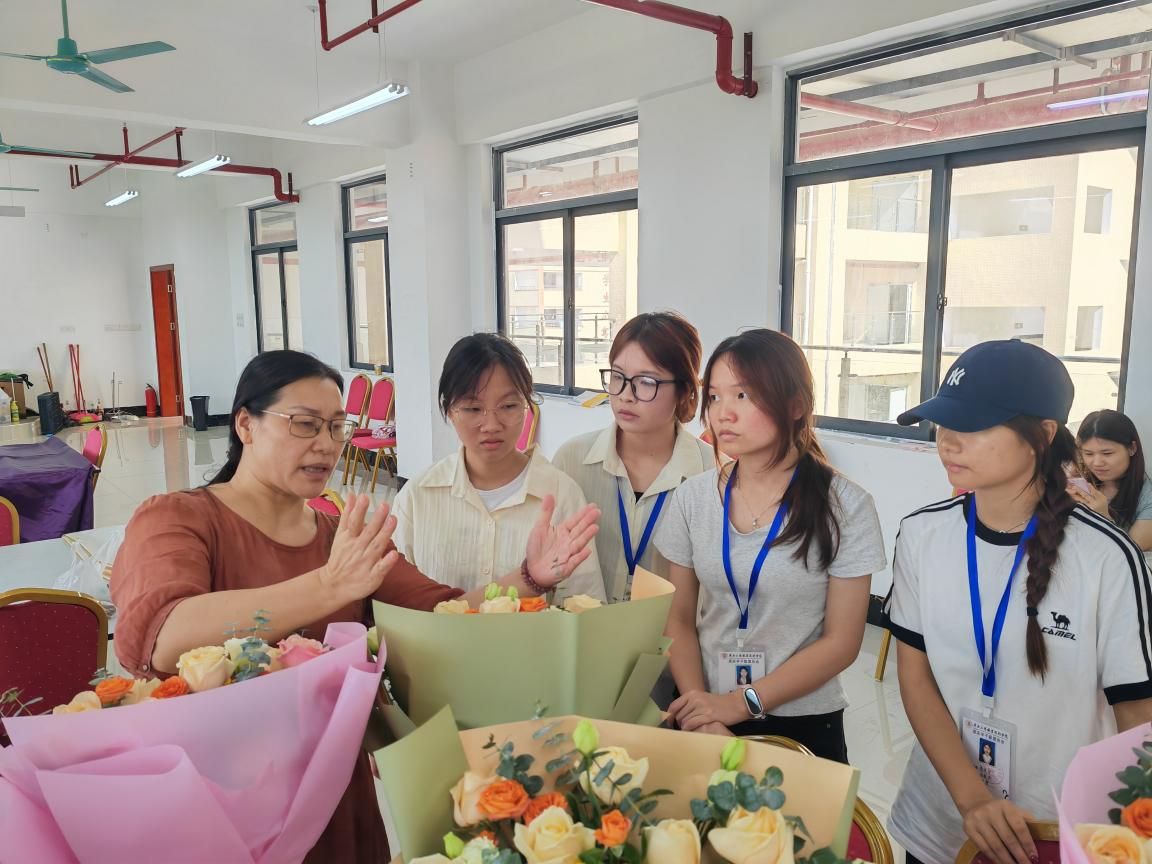 她的課堂往往是“沉浸式”的:她不愛念PPT,更愿把教室變成“職場模擬場”。教餐飲服務,就比賽擺臺速度與規范;講前廳接待,就設置“證件丟失”“預訂出錯”等難題,讓學生分組找解決方案。她常常在學生操作時突然提問:“左撇子客人該怎么調整刀叉?”以此引導學生跳出定式,站在客人角度思考。