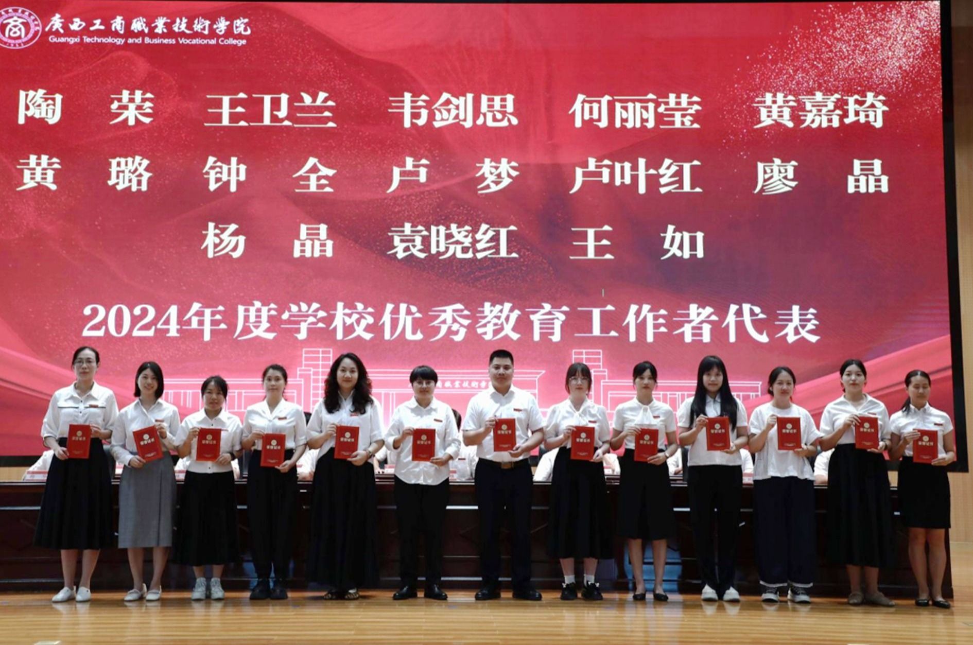 大會對學校2024年度學校優秀教師和優秀教育工作者代表、2025年度學校教學能手、2025年度學校教學名師、2024年中國國際大學生創新大賽獲獎師生代表、2025年世界職業院校技能大賽(爭奪賽)獲獎師生代表、2024年度廣西技術能手進行了表彰。