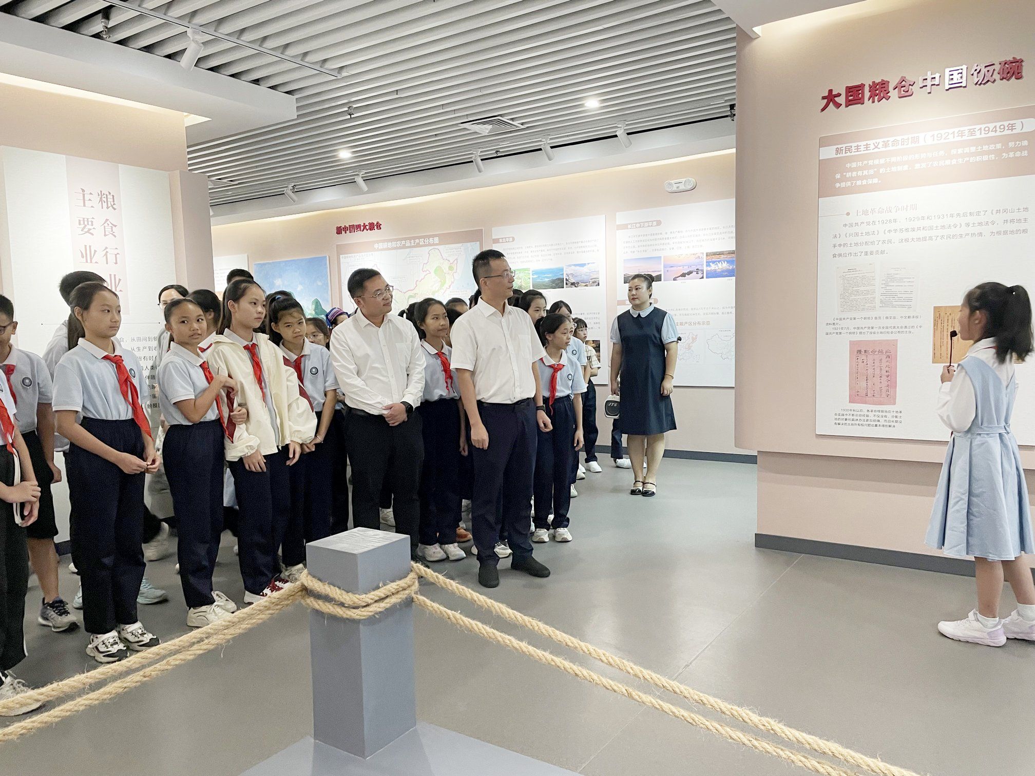 活動結束后,與會人員共同參觀了糧食文化館。在紅領巾講解員和大學生志愿者的引導下,大家通過豐富的圖文史料和實物陳列,深入了解我國糧食事業發展的輝煌歷程和深厚文化底蘊,深刻感受從“吃不飽”到“吃得好”的歷史性飛躍,進一步堅定了賡續奮斗、保障國家糧食安全的信心和決心。