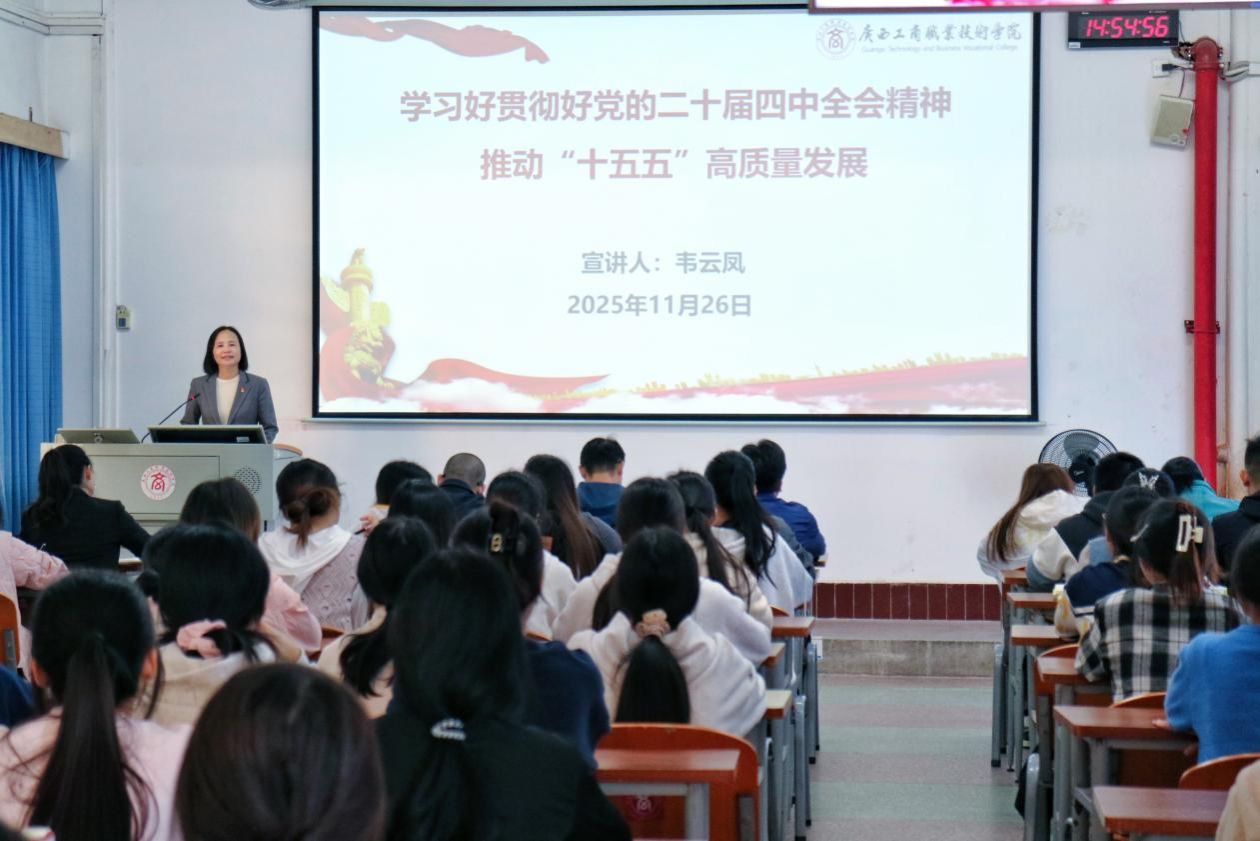 11月26日下午,學(xué)校黨委副書記、紀(jì)委書記韋云鳳在中堯校區(qū)開展學(xué)習(xí)貫徹黨的二十屆四中全會精神專題宣講,黨委宣傳部(新聞中心)、紀(jì)委辦公室、監(jiān)察室教師以及會計學(xué)院師生代表參加宣講會。