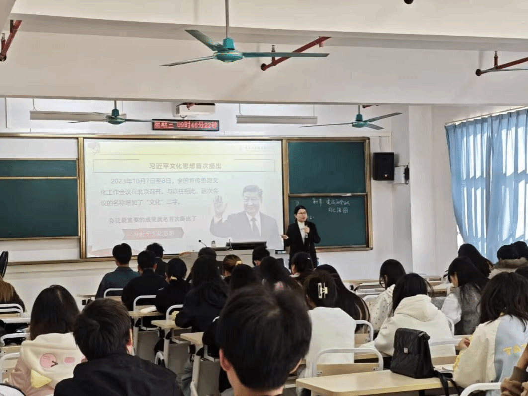 課堂上,授課教師梁小梅以“為什么要建設中國特色社會主義文化”作為問題導向,引導學生思考建設社會主義文化強國的必要性。她圍繞“文化是國家民族的靈魂”“文化繁榮興盛是實現中華民族偉大復興的必然要求”等核心要點,結合文化自信、人民精神文化需要等現實維度,用案例與理論相結合的方式,層層深入,系統講述了中國特色社會主義文化建設的時代價值。授課活動中梁老師還結合青年關注的案例,將理論要點轉化為生動的現實思考,課堂活動中學生積極參與。