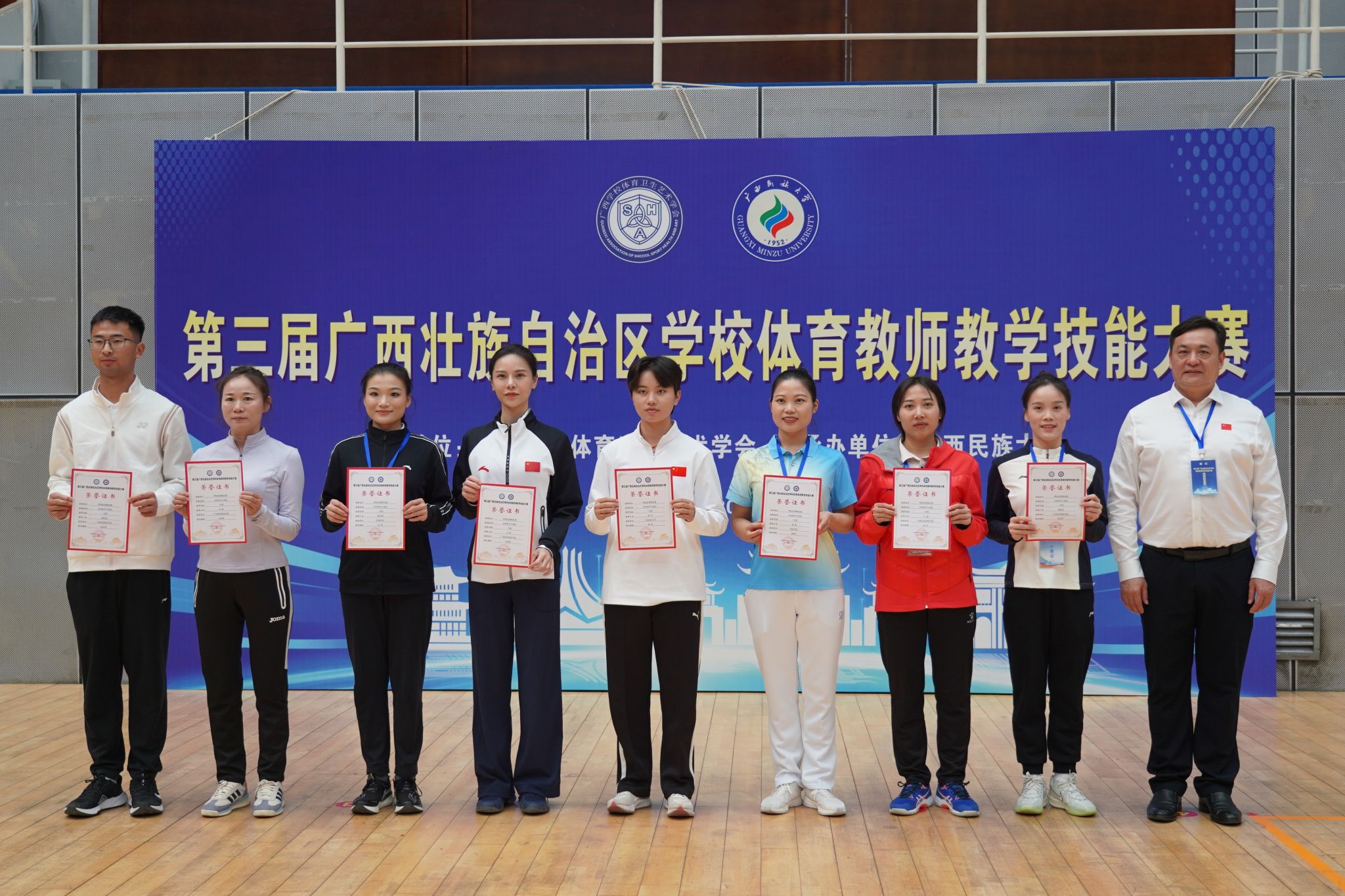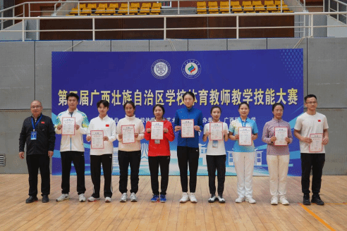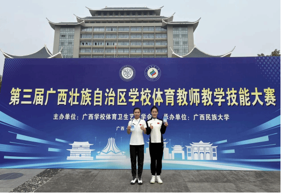 近日,我校通識教育學院體育教師團隊在第三屆廣西壯族自治區學校體育教師教學技能大賽中憑借扎實的教學基本功、先進的教學理念以及出色的現場表現,在眾多參賽選手中脫穎而出,取得了優異成績。其中,王秀美老師榮獲高職高專組術科綜合技能一等獎,丘文婷老師榮獲高職高專組術科綜合技能二等獎。