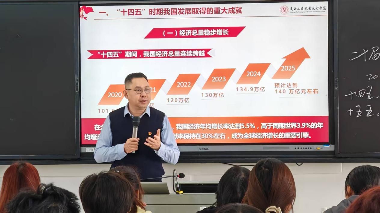 陳寧春立足學校辦學實踐,系統講述了近年來學校的發展成就和未來發展規劃,鼓勵青年一代要將個人理想融入國家發展大局,勇擔“十五五”時代使命,加強知識學習,夯實專業基礎,在未來崗位上能發光發熱,用實際行動為學校增光,為實現《建議》擘畫的宏偉藍圖努力貢獻青春力量。