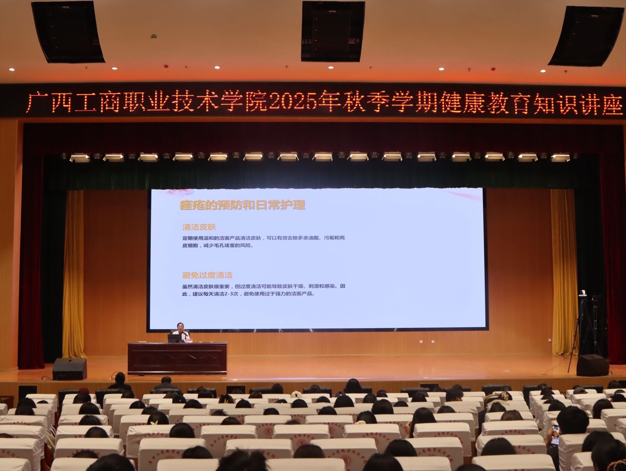 為實(shí)施健康中國戰(zhàn)略,強(qiáng)化學(xué)生健康素養(yǎng)培育,引導(dǎo)師生樹立科學(xué)健康觀念,12月16日,我校在武鳴校區(qū)學(xué)術(shù)活動(dòng)中心開展2025年秋季學(xué)期健康教育知識(shí)講座。本次講座特邀南寧市武鳴區(qū)婦幼保健院皮膚科主任黃麗芳、產(chǎn)科副主任醫(yī)師覃柳芳授課,財(cái)金學(xué)院、糧油與管理學(xué)院、經(jīng)貿(mào)與康旅學(xué)院、會(huì)計(jì)學(xué)院師生代表參加了此次講座。