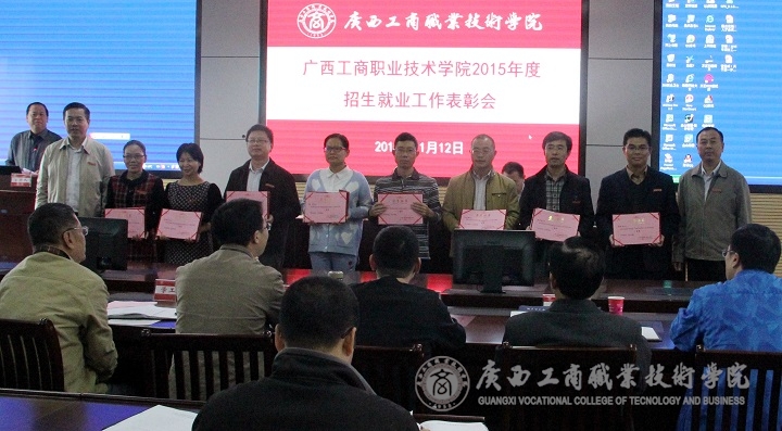在2015年招生就業(yè)工作表彰會(huì)上學(xué)院副院長(zhǎng)李仕欽宣讀了招生就業(yè)工作獎(jiǎng)勵(lì)文件,隨后學(xué)院領(lǐng)導(dǎo)為獲獎(jiǎng)部門(mén)集體及個(gè)人頒發(fā)獎(jiǎng)狀。學(xué)院李維副院長(zhǎng)做招生工作小結(jié),指出2015年招生圓滿(mǎn)結(jié)束,生源充足,質(zhì)量提升并希望我院能再接再勵(lì),再創(chuàng)輝煌業(yè)績(jī)。學(xué)院黨委副書(shū)記蒙啟成發(fā)表就業(yè)工作小結(jié),指出我院畢業(yè)生就業(yè)形勢(shì)大好,但也提出希望全體教職工認(rèn)識(shí)到畢業(yè)生就業(yè)工作對(duì)學(xué)院發(fā)展的重要性,加強(qiáng)就業(yè)指導(dǎo)服務(wù),把我院畢業(yè)生就業(yè)工作推向一個(gè)新的工作平臺(tái)。