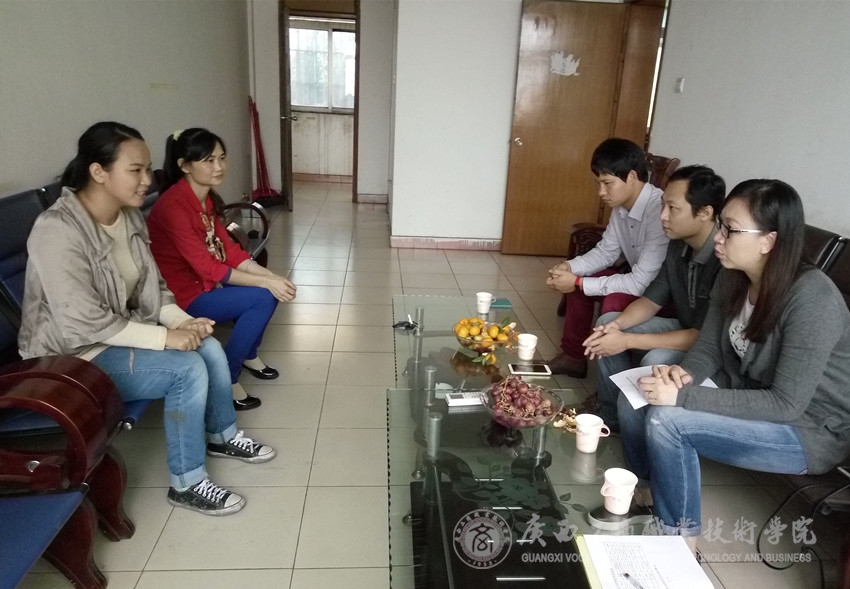 2015年11月11日至13日,由我院會計系黨委副書記李娜老師領隊,教務科研處實訓科周林老師、經管系農官彬老師、財信系莫凱淳老師等一行4人組成的頂崗實習檢查小組前往欽州和北海進行了頂崗實習實地檢查。檢查小組分別走訪了廣西欽州市恒通貨柜碼頭倉儲有限公司、廣西潮豐國際貨物代理有限公司欽州分公司、廣西百悅物流有限公司,北海南洋國際大酒店等4家企業,看望了正在企業進行頂崗實習的13級學生,在檢查交談中了解了學生的工作、學習和生活實際情況,同時也與學生頂崗實習單位主管部門領導葉瓊蓮經理、馮云經理、何秀嬌主管等進行了交流座談。