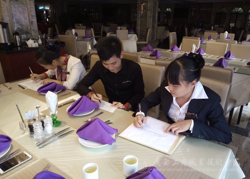 與在北海南洋國際大酒店實習的吳秋良、黃金玲同學座談時,檢查組老師詳細了解了他們的生活、工作、及待遇情況。這兩位同學對酒店各方面工作待遇都感到滿意,同時酒店主管領導對學生的生活、工作、學習十分關心,學生在實習工作中遇到的問題與困難都給予及時的溝通和解決問題。