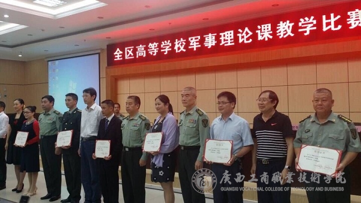 2015年11月18、19日,由自治區教育廳和廣西軍區司令部主辦,廣西經貿職業技術學院承辦的2015年廣西高校軍事理論課教育比賽決賽在廣西經貿職業技術學院舉辦。我院張宇斐老師參加總決賽并獲得了三等獎。這為我院學生素質課程教學錦上添花。據悉,由我院黨委學工部負責組織開展的四門課程,已有三門獲得區級大賽相關獎項。這將大大鼓勵和推進我院學生素質教育課程的教學改革。