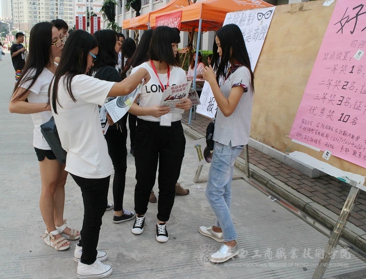 2015年11月18日中午12時,以“ 商院觸影之最美商院 ”為主題的攝影大賽,由我院C度攝影協會承辦,在我院食堂前對我院同學征集報名,正當放學時間有許多同學前往報名。