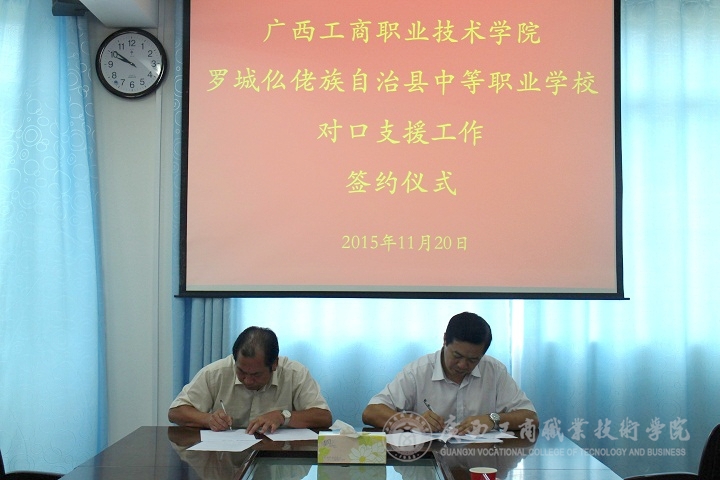 2015年11月20日上午,羅城仫佬族自治縣中等職業(yè)學(xué)校羅智校長一行四人到訪我院,就與我院簽訂對(duì)口支援工作協(xié)議事宜進(jìn)行了研討并簽訂了對(duì)口支援協(xié)議,明確了今后雙方開展對(duì)口支援工作的方向和任務(wù)。