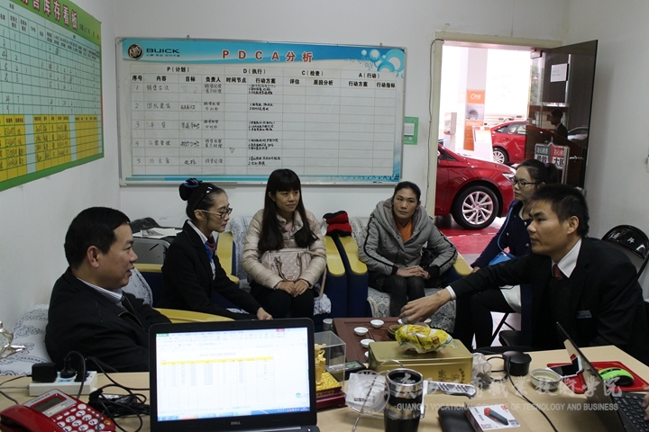 座談中,玉林市得利汽車銷售服務有限公司財務總監黃總監對我院財信系杜嬋同學近三個月所取得的工作業績和已掌握的專業技能給予了充分的肯定,并希望雙方能在今后進一步加強校企合作。同時,黃總監還強調了學生提升為人處事、善于不斷總結與思考等軟實力的重要性,希望實習生們要有良好的工作心態,努力從基層鍛煉,不斷提高自身專業技能和競爭力,樹立良好的職業規劃,為今后不斷提升奠定夯實的基礎。