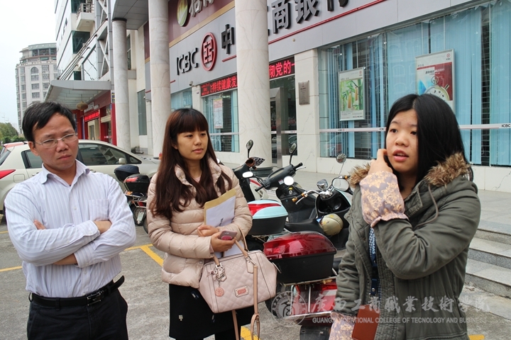 2015年12月11日,由學院李維副院長帶隊,財務處覃超穎處長、教務科研處闕勇平副處長、教務科研處田佩東老師,會計系就業秘書羅穎老師,財信系就業秘書莫凱淳老師等檢查組一行6人,專程赴廣西玉林市3家企業進行交流洽談,檢查看望13級7名頂崗實習生,了解學生實習相關情況,為深化校企合作尋找契機。