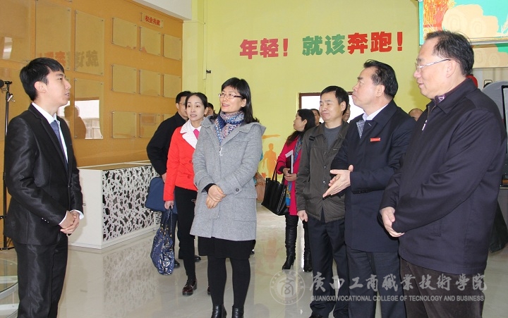 最后,我院領導陪同葛巧紅副局長一行、林愈溪副局長、韋尚英處長、韋濟能處長一同參觀考察了學院多媒體教室、電子商務創業基地、學生公寓及學院餐廳等。