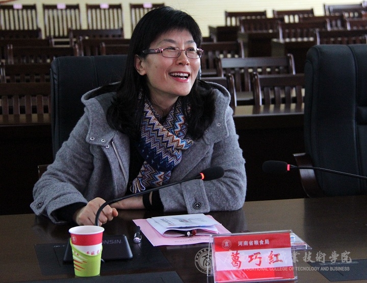 隨后,河南工貿職業學院孫柏梁書記、河南省經濟管理學校李俊偉校長、河南經濟貿易高級技工學校郭國強校長依次發言,就建校、辦學等方面展開熱烈討論。隨后,河南省糧食局葛巧紅副局長在會上講話,表示對我院人才培養感興趣,并與在座同志深入探討教學方面等話題。