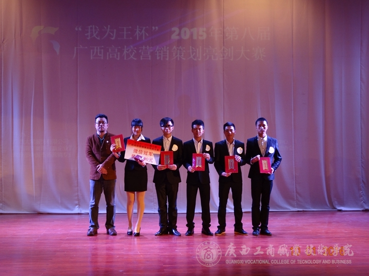 2016年1月10日13時,由中國市場營銷課程標準開發中心廣西分中心主辦,廣西南寧奧理可贏企業管理咨詢有限公司承辦、廣西太常服飾有限公司贊助的“我為王”2015第八屆高校營銷策劃亮劍總決賽在廣西財經學院舉行。我院共有4支隊伍在兩個多月的不斷奮戰中,經過層層地選拔,在廣西區一百多支參賽隊伍中脫穎而出,并進入到了總決賽環節。這是該賽舉辦八屆以來,廣商院首次擁有4支隊伍進入總決賽并奪得一系列大獎的重大突破。