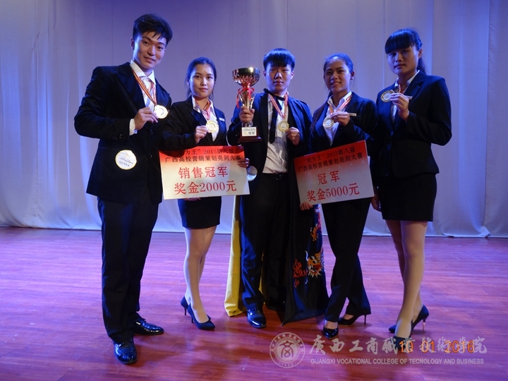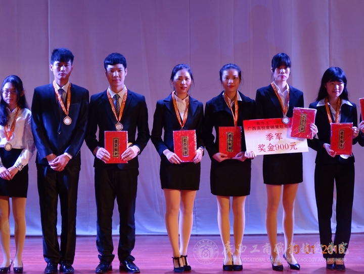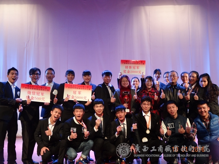 由營銷1434班賀炳瑋、何海秋、溫婷宏、李雅倩及營策1432班劉行杰組成的“內在美”團隊從初賽開始就以廣西高校銷量第一、廣西高校總成績第一的優異成績進入決賽,經過團隊選手一番精彩的PPT策劃方案演講,一舉成功斬獲總決賽冠軍、銷售冠軍、最佳視頻獎的好成績!由營銷1434班孔倩姿、余端端、張龍泉、梁進康、陳怡沖五位同學組成的“KING”團隊也以優異的成績一舉奪下總決賽的季軍。另外,由營銷1432班蔡佳斌、營銷1433班陳智慧、營銷1431班石超蘭、營策1503班莫小凡、營策1501班龐廣玉組成的“多米諾”團隊獲得微信冠軍、優秀獎!由營策1433班黎霞、營策1503班謝坤宏、馬彩彬、許本海組成的“宏彬海”團隊獲得優秀獎!同時,李紅梅教授與張煌強老師都獲得了優秀指導教師獎!