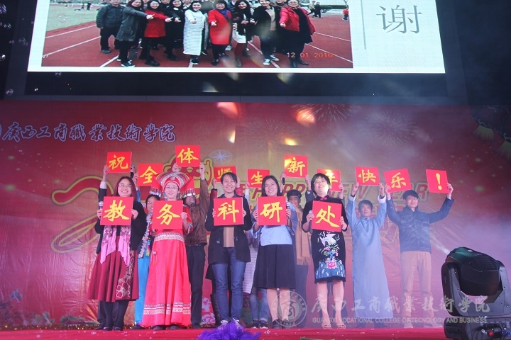 現(xiàn)場華燈璀璨,熱鬧非凡。晚會伊始,主持人向大家介紹了到場的學(xué)院領(lǐng)導(dǎo)、嘉賓及教師等,接著由黨委書記覃武云做新年賀辭,他代表學(xué)院黨委向全體師生致以誠摯的問候和新年美好祝福。