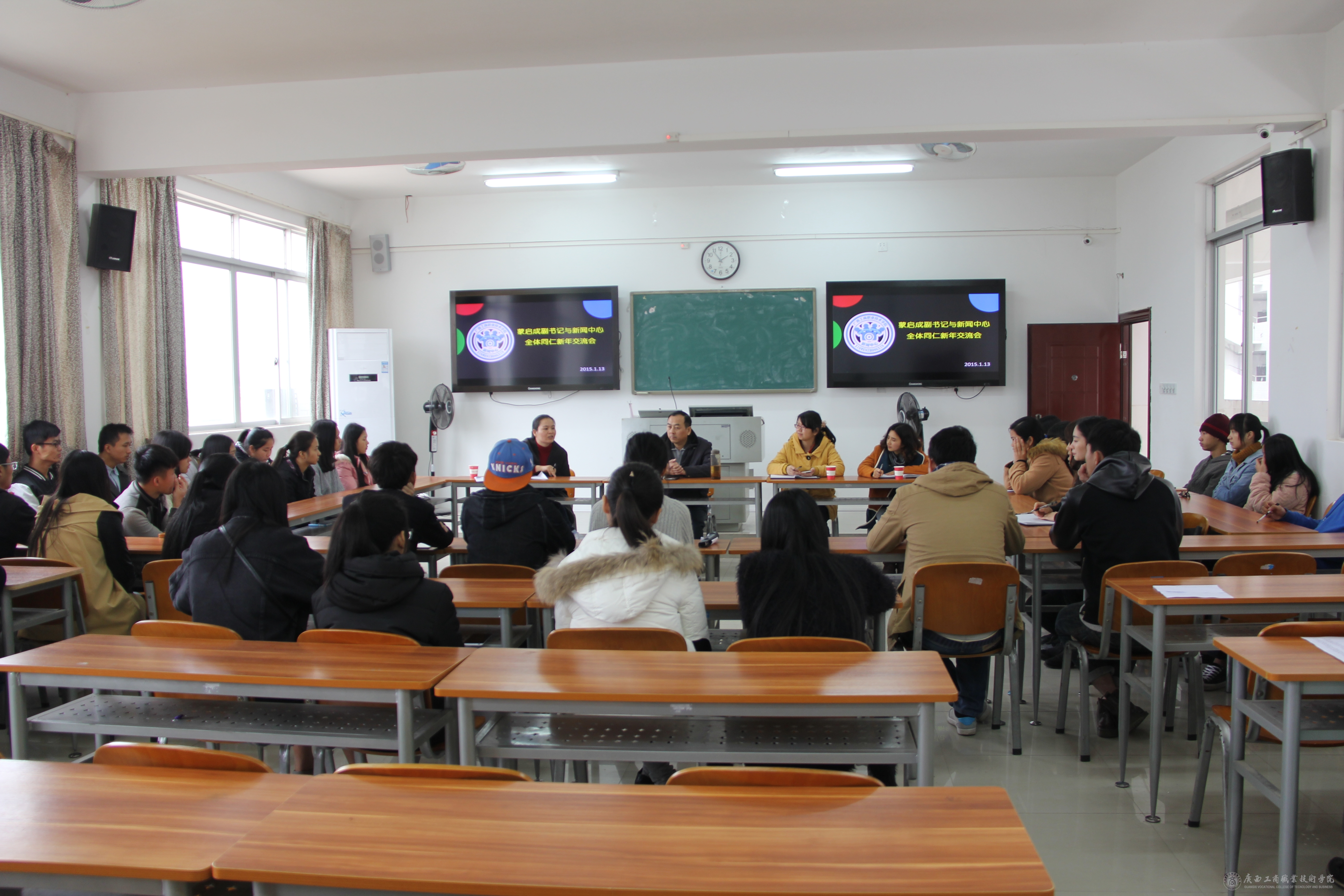 2016年1月13日12:00,我院黨委副書記蒙啟成與我院黨委宣傳部新聞中心師生在校本部2206教室召開交流座談會。我院黨委組織部李筱翎、黨委宣傳部莫惘、馮艷瓊等老師以及宣傳部新聞中心全體學生參加了本次交流會。