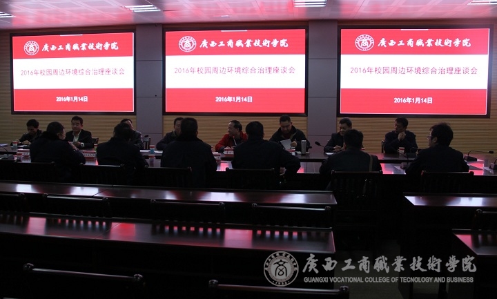2016年1月14日下午16:00,我院聯合相關合作單位在校本部2119視頻會議室召開2016年校園周邊環境綜合治理座談會。學院副院長李仕欽、后勤管理處以及西湖派出所、石埠食檢所、石埠城管、高新城管、羅文社區等單位代表參加了座談會。