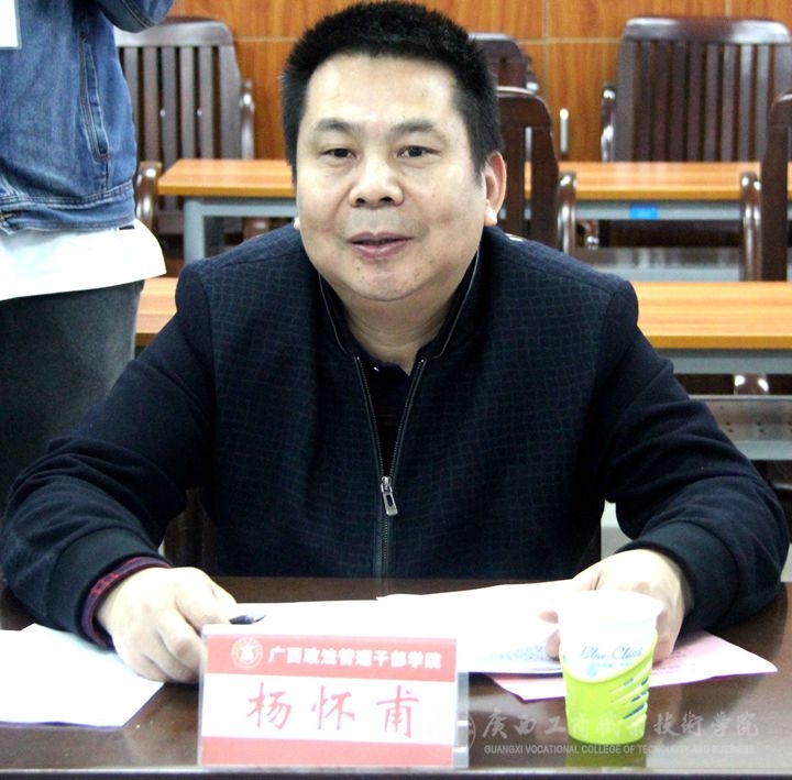2016年3月23日星期三上午,廣西政法管理干部學(xué)院楊懷甫副院長(zhǎng)一行七人到我院交流經(jīng)驗(yàn)。我院黨委副書記、紀(jì)委書記蒙啟成與我院相關(guān)部門負(fù)責(zé)人接待了楊懷甫副院長(zhǎng)一行七人。